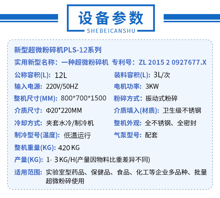(1.3μm)目的粉碎要求,使用特殊工藝時(shí)可到1`0.1μm.對(duì)花粉、靈芝孢子粉等孢子類